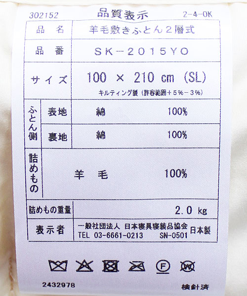 イギリス産ウールは、夾雑物も少なく弾力性に優れているため今回敷き布団の中在として採用しました。
