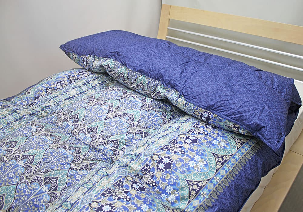 日本製ふとん側生地、国内縫製の純日本製羽毛布団です。