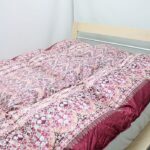 上層の布団は、保温性に優れた大きなマス目のキルトで暖かさを確保。